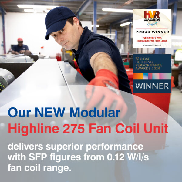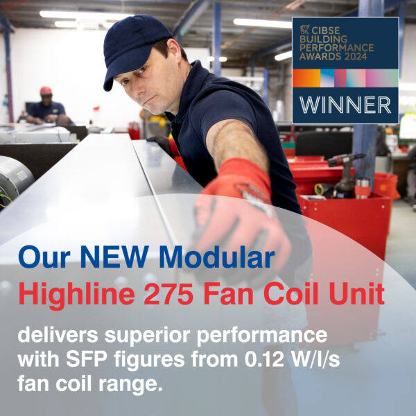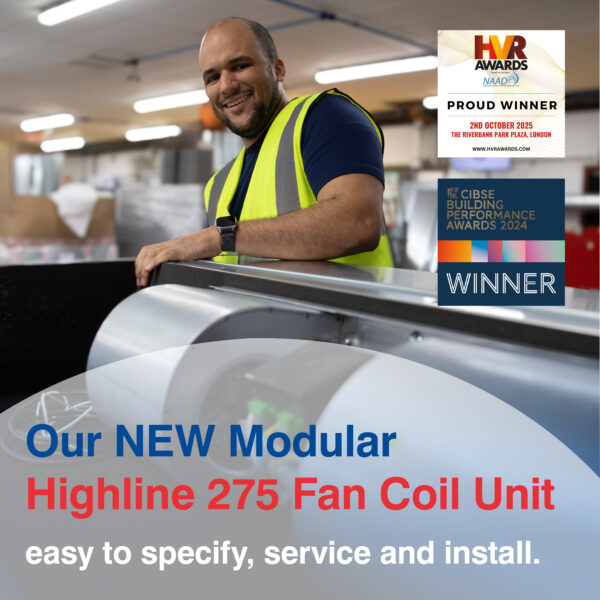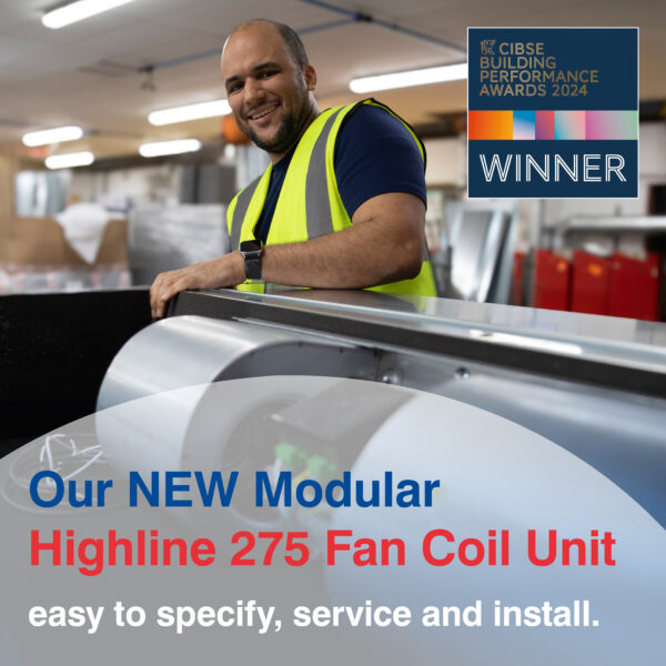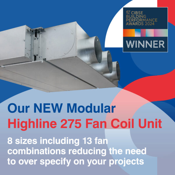 We are proud to introduce the latest addition to our Modular Highline Range of award-winning fan coil units, namely Modular Highline 275. This range won the prestigious Building Performance Awards in 2024, Thermal Comfort category.